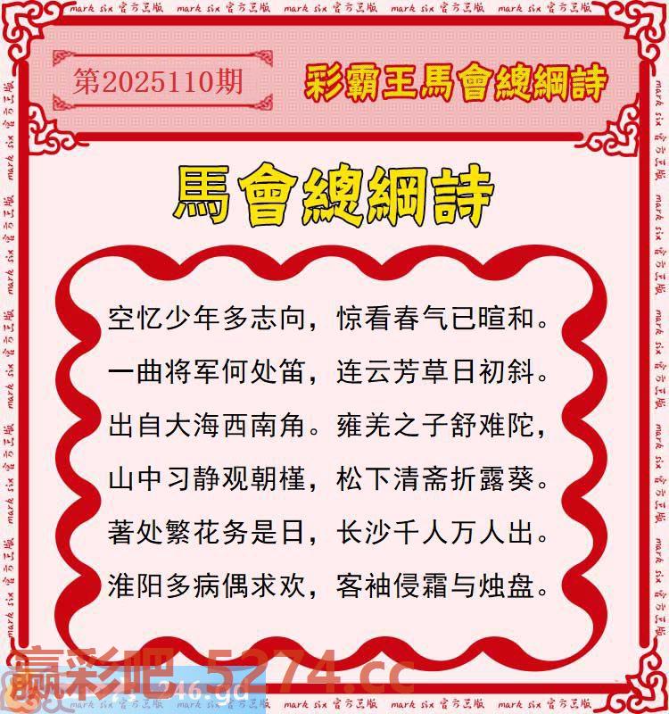 110期:彩霸王馬会总纲诗